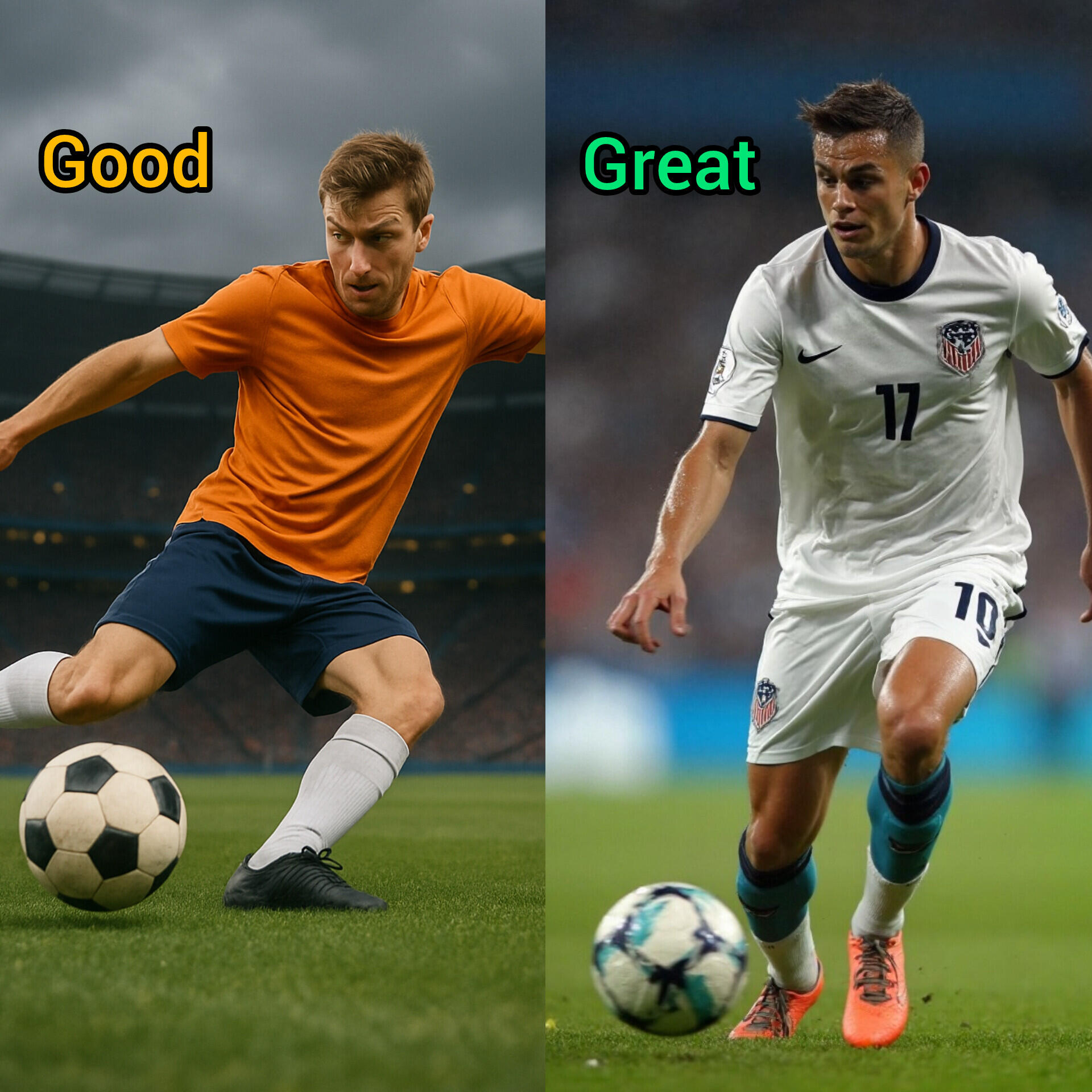 I created both images using AI. Don't just settle for Good. You started your business to be Great.